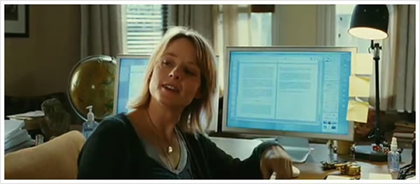 制作スタッフの主要な人物がMac使いなのか、作家アレクサンドラが執筆に使うコンピュータがMacintosh。そのマシンが映し出されたシーンはなかったものの、シネマディスプレイを2枚並べてましたから、おそらくMacProではないかと勝手に妄想。一方南の島に住む少女ニムとその父ジャックが使うコンピュータもMacintosh。少し前のiMacでした。Appleの製品は時折映画で出てくるけれども、そのデザインの良さやcoolさは、銀幕の中でよく映える。